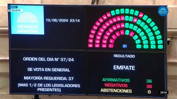 En este caso, el presidente Provisional del Senado, Bartolomé Abdala, tendría voto doble; es decir, votaría primero en su calidad de senador en ejercicio y, posteriormente, lo haría como titular de la Cámara alta en reemplazo de Villarruel. Despejada esta duda, este escenario podría aplicarse en la del paquete fiscal, cuyo debate estaba previsto para iniciarse al término de la votación en particular de Bases.
