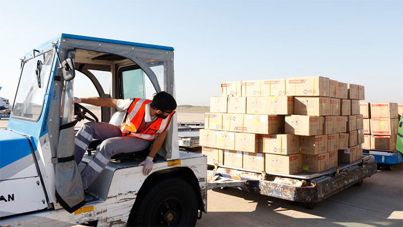 El segundo vuelo de Aerolíneas Argentinas llegó esta mañana a las 8:20 horas a la Argentina, proveniente desde China, con 14 toneladas de insumos críticos sanitarios que adquirió el Gobierno nacional para la prevención de la pandemia coronavirus COVID-19 en el país.