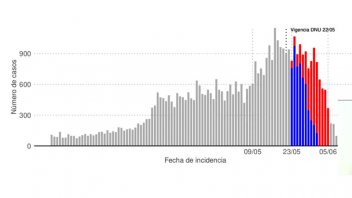 En el informe, el Director General de Epidemiología, Diego Garcilazo, confirmó que “del 23 de mayo al 5 de junio de 2021, el período en el que se analizan los casos confirmados durante la vigencia del DNU del 22 de mayo, se ha visto una detención en el crecimiento del número de casos, en relación a lo que se registraba en semanas anteriores”, comunicó al remarcar que “el descenso fue del 8% en comparación a los 14 días previos”.