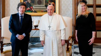 La oficina de prensa del presidente Javier Milei publicó una foto del papa Francisco con el mandatario y la secretaria general de la Presidencia, Karina Milei, tras el encuentro privado que mantuvieron esta mañana en el Vaticano.