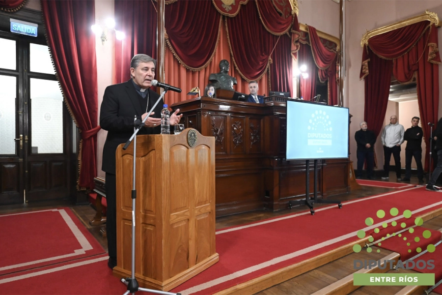 La decimosegunda sesión comenzó de una manera especial ya que se hizo presente en el recinto el nuevo arzobispo de Paraná, Monseñor Raúl Martín, quien concurrió especialmente para participar del homenaje que se le realizó a quien fuera arzobispo de Paraná entre 1986 y 2003, el Cardenal Estanislao Esteban Karlic. Teólogo, profesor y destacada personalidad a nivel nacional, Karlic falleció el pasado 8 de agosto y la Cámara de Diputados decidió realizarle un respetuoso homenaje, primero a través de un video con conmovedoras imágenes y diálogos con el pastor entrerriano, y luego con las palabras del actual arzobispo de Paraná.
