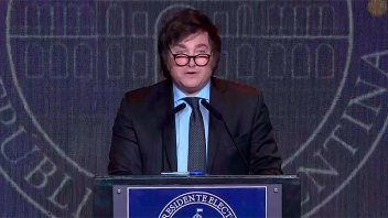 Esta noche, al hablar en el Hotel Libertador, Milei dijo que su gobierno se sustentará en el "comercio libre" y en el "cumplimiento de los compromisos" asumidos.