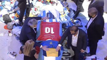 El adiós a Diego: el Presidente le dejó la camiseta de Argentinos en el féretro