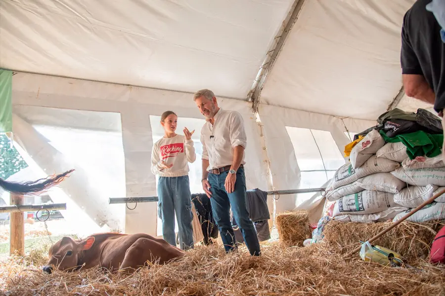 El gobernador Rogelio Frigerio recorrió este viernes la 22° Expo Provincial de la Leche y la 13° Expo Jersey Entrerriana, que se desarrollan en la Sociedad Rural de Nogoyá. Allí reafirmó que trabaja "desde el Estado para que el sector privado crezca, y de esa manera crezca la provincia"; y destacó el rol estratégico de la actividad lechera en el desarrollo productivo de Entre Ríos.