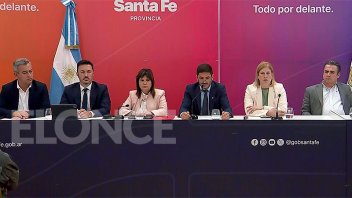 La ministra de Seguridad, Patricia Bullrich, visitó este lunes la provincia de Santa Fe para monitorear la situación y brindó una conferencia de prensa junto al gobernador Maximiliano Pullaro, su par de Defensa, Luis Petri, el intendente de Rosario, Pablo Javkin, y representantes de la Justicia y fuerzas de seguridad.