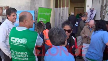 Trabajadores del Instituto de Agricultura Familiar de Paraná realizaron un abrazo simbólico, frente a las oficinas de calle España y Pellegrini para pronunciarse en contra del cierre del organismo.