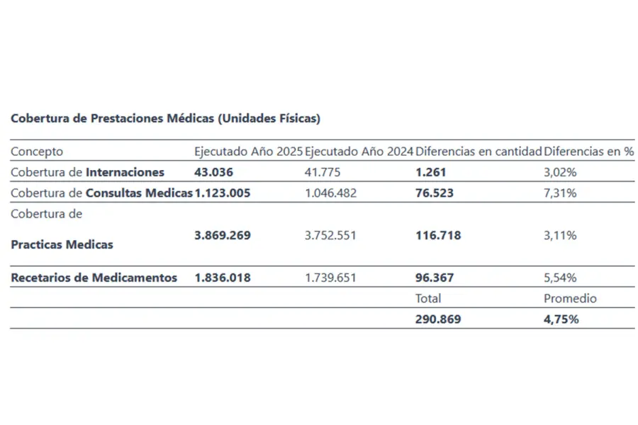 En términos agregados, el conjunto de estas prestaciones representa 290.869 coberturas adicionales brindadas a afiliados durante 2025 en comparación con el año anterior.