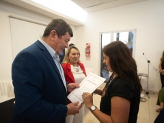 El acto de entrega fue encabezado por el presidente del IAPV, Manuel Schönhals, y la intendenta Dora Bogdan, quienes estuvieron acompañados por el vocal del organismo, Aníbal Steren; el senador provincial Alberto Casiano Otaegui; y el director se la Regional Sur, Pablo Echandi, entre otras autoridades.