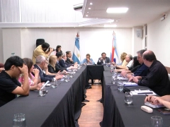 El encuentro fue encabezado por el ministro de gobierno, Manuel Troncoso y la presidente del CGE, Alicia Fregonese, junto a autoridades educativas del gobierno de la provincia y los diferentes gremios docentes, se dio en el auditorio "Gral San Martín", del Consejo General de Educación.