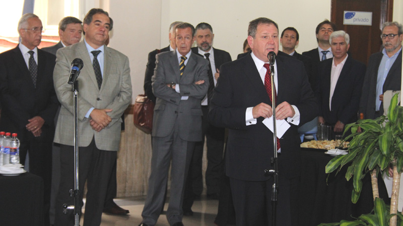 El ministro llegó pasada las 11:30 al edificio de calle Cerrito y mantuvo una reunión con el flamante presidente del organismo. Seguidamente se reunió con todos los directores que conforman el directorio, y los miembros de la comisión fiscalizadora.