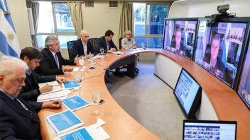 Desde la residencia de Olivos, el mandatario se comunicó mediante videoconferencia con los 23 gobernadores y el jefe de Gobierno porteño, Horacio Rodríguez Larreta, para analizar la situación de cada distrito.