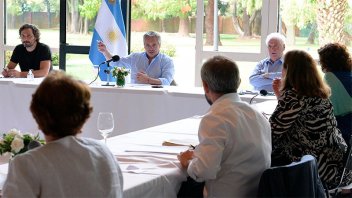 El Presidente participó del encuentro junto al jefe de Gabinete, Santiago Cafiero; el ministro de Salud, Ginés González García; el secretario General de la Presidencia, Julio Vitobello; y la secretaria Legal y Técnica de la Presidencia, Vilma Ibarra.
