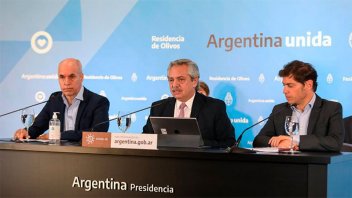 <b> "Tantas veces que buscamos epopeyas, esta es una epopeya del pueblo argentino. No debemos perder de ningún modo el esfuerzo hecho. Lo han dicho los dos gobernadores"</b>, señaló Fernández, al referirse a Axel Kicillof y Horacio Rodríguez Larreta, que lo acompañaron en la Quinta de Olivos.