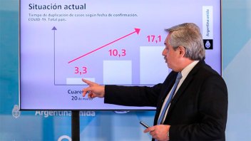 Fernández indicó que "tenemos que ir caminando hacia un proceso de liberación paulatina. Desde el primer día tenemos un protocolo. En esta etapa tenemos que tener la duplicación del contagio entre 15 y 20 días. Podemos permitir que circulen la mitad de los argentinos".