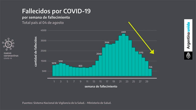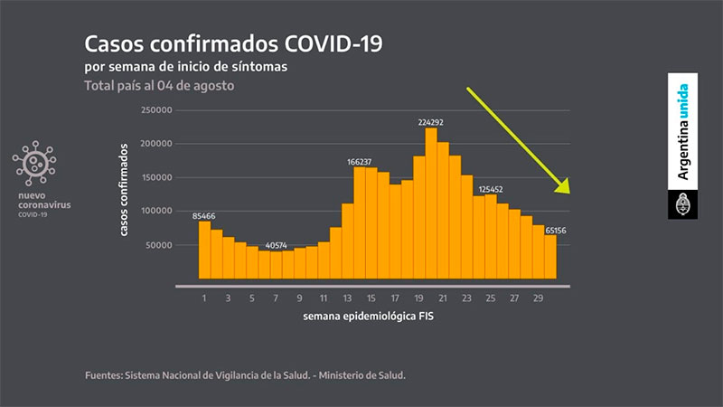 En el inicio de su mensaje, el Presidente sostuvo que "hace 10 semanas consecutivas que baja la cantidad de casos. Hace ocho semanas consecutivas que bajan los fallecimientos y las internaciones en terapia intensiva. Hace tres semanas no hay ningún aglomerado urbano en Alarma epidemiológica y sanitaria" y puso énfasis en se está logrando retrasar el ingreso de la variante Delta a la Argentina que ya está en 135 países".