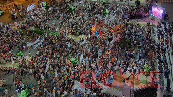 Un grupo de vecinos de Paraná y localidades aledañas se hicieron presentes en Plaza Mansilla, con banderas y pancartas, a la espera de la llegada del gobernador y el presidente de la Nación, registró <b>Elonce TV.</b>