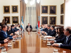 Del encuentro, que tuvo lugar en la Casa de Gobierno, participaron la vicegobernadora Alicia Aluani, ministros y secretarios del Poder Ejecutivo provincial.