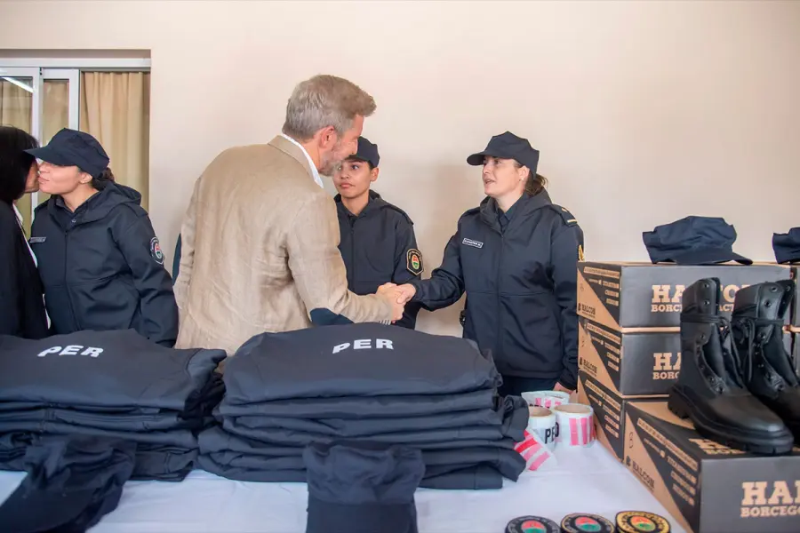 En relación a los uniformes, confeccionados por la Sastrería policial, señaló que "la entrega del equipamiento a nuestra policía va en línea con dos conceptos básicos que tenemos: cuidar a los que nos cuidan y que cada peso de los contribuyentes vaya a donde tiene a donde tiene que ir". En esa misma línea, se refirió a los tres patrulleros cero kilómetros y prometió que "vamos a seguir renovándolos durante estos dos años que nos quedan de gestión".