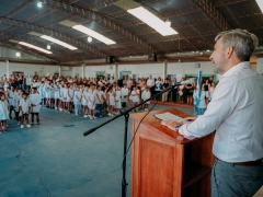 En su discurso, Frigerio recordó que, al asumir su mandato, se trabajó contrarreloj para que las escuelas estuvieran en condiciones para iniciar el ciclo lectivo. Además, mencionó que se implementó un plan de infraestructura escolar que abarcó alrededor de 150 establecimientos educativos, con una inversión cercana a los 4.000 millones de pesos para su reparación y acondicionamiento.