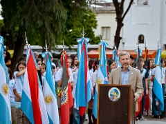 El evento reunió a autoridades locales, representantes de la educación, fuerzas de seguridad y miembros de la comunidad, quienes se unieron en la Plaza 25 de Mayo para conmemorar el hito histórico.