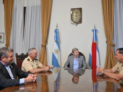El gobernador Rogelio Frigerio, recibió al nuevo comandante de la Segunda Brigada Blindada "General Justo José de Urquiza" del Ejército Argentino, coronel Francisco José Cajal, y se despidió del coronel Gonzalo Rodríguez Espada, quien deja el cargo.