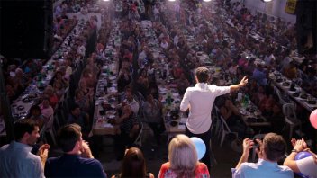 El equipo de Gainza estuvo arriba del escenario: Mario Moine (hijo), Francisco Spahn, Maximiliano Paulín, Rosana Toso, Estela Boeykens, ?Silvia Campos?, Javier Schonfeld, Pedro Oilhaborda, Jorge Roldán, Cristian Larsen, Leandro Fernández y Octavio Uranga, entre otros jóvenes dirigentes locales.