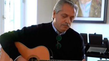 "Cuidarnos es quedarnos en casa, para que un virus no nos ataque y nos lastime", expresó el mandatario que ajecutó unos acordes en guitarra del tema "Todas las Hojas son del Viento", de Luis Alberto Spinetta.