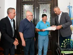Junto al presidente del Centro de Veteranos de Paraná, Oscar Eguía, fueron recibidos por el titular de la Cámara baja, Gustavo Hein, quien les hizo entrega del símbolo entrerriano. Participaron también del encuentro, el diputado Jorge Maier y el veterano de Malvinas Ricardo Álvarez.