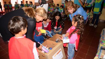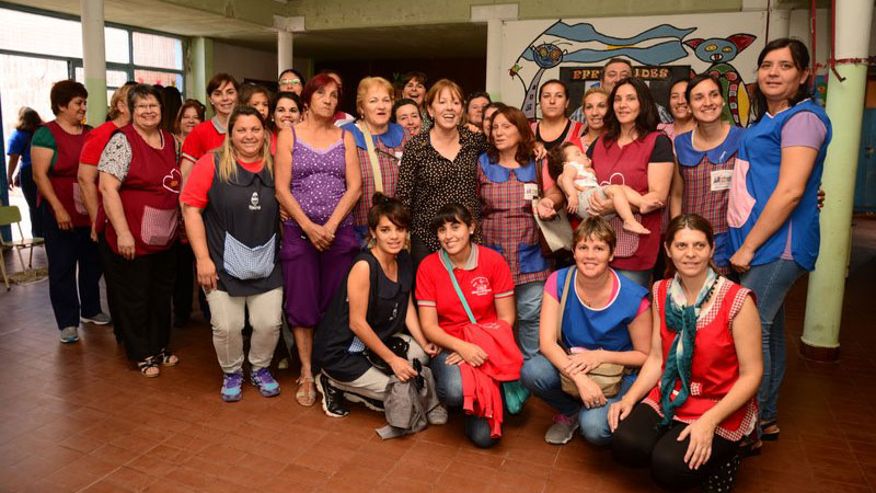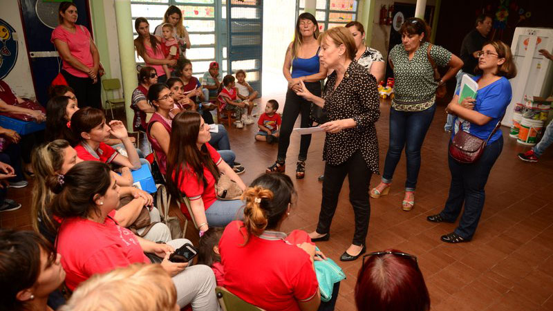 "Acá (Jardín Maternal Jilgueritos) se había roto la heladera, y la reemplazamos; en Abejitas hubo un robo y ya se lo equipó con lo necesario; también se entregó ropa de trabajo ?hecha por manos municipales en el taller textil?, de calidad. También se entregaron libros para las bibliotecas, ya que creemos que cada jardín debe contar con su biblioteca. Hay niños que provienen de familias donde no tienen acceso a los libros, y consideramos que es sumamente importante que se les lea cuentos, que escuchen, que se expresen; es un gran ejercicio para su formación".