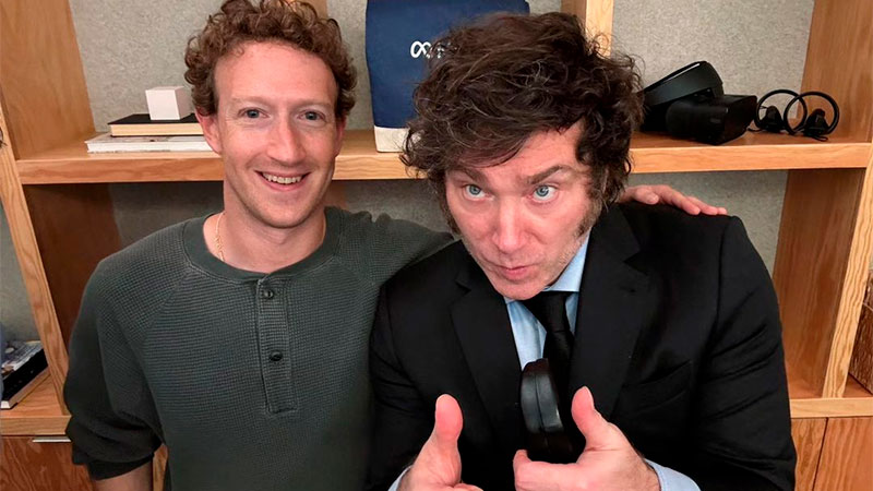 Cuando terminó su cónclave con Zuckerberg, el presidente posteó en su cuenta oficial de X una foto con el CEO de META y una frase en mayúscula que dice: “Fenómeno barrial con Mark Zuckerberg...!!! Viva la libertad carajo”.