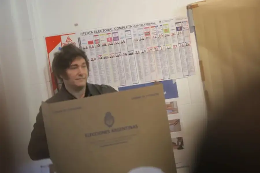Según se pudo observar, el mandatario ingresó rápidamente al edificio, vestido con su tradicional campera de cuero y una remera negra. Esperó unos minutos hasta que le tocó su turno y depositó su voto en la mesa 2211. Durante su votación, lo acompañó su hermana, Karina Milei, la secretaria general de la Presidencia.