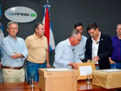 La agenda, centrada en el plan de mejoramiento de la infraestructura escolar y hospitalaria en la región, comenzó en la sede central de la Cafesg en Concordia, con la apertura de ofertas para dos obras estratégicas que representan una inversión total superior a los 880 millones de pesos: la construcción del nuevo sector de Oncología y Hemoterapia del hospital Justo José de Urquiza, en Concepción del Uruguay, y la refacción de la sala de Internación Masculina del hospital San Benjamín, en Colón.