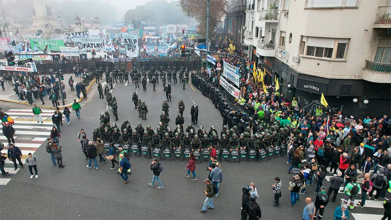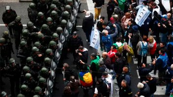 Efectivos de la policía federal y de la Prefectura pusieron en marcha el protocolo antipiquetes contra los militantes que marchaban en contra del proyecto de ley.