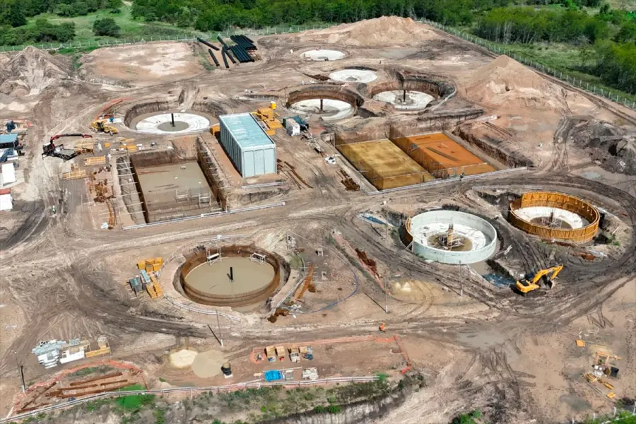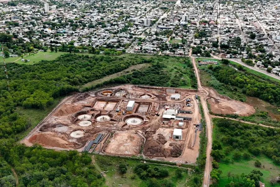 Actualmente, los trabajos se desarrollan en distintos frentes de manera simultánea, con avances significativos en la estación elevadora de ingreso, así como en los edificios de sopladores, taller, depósito, oficinas y laboratorios. También se registra un alto nivel de ejecución en las principales unidades del sistema de tratamiento, como sedimentadores primarios, reactores biológicos y sedimentadores secundarios.