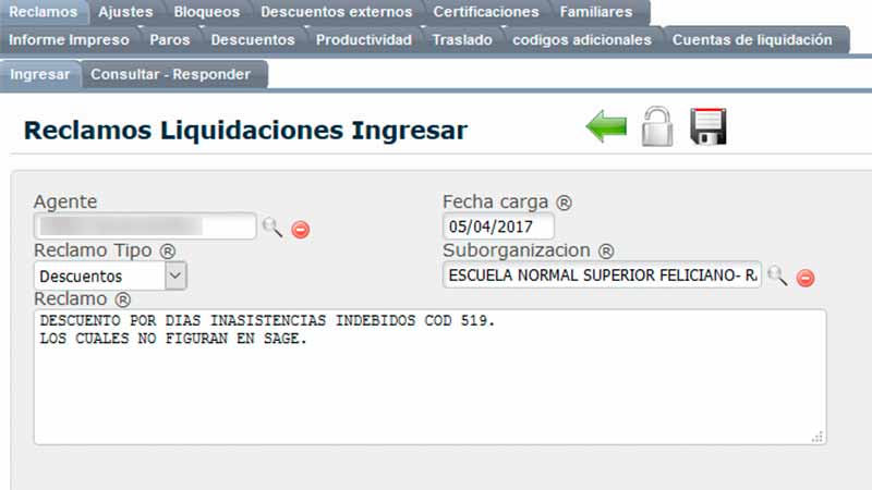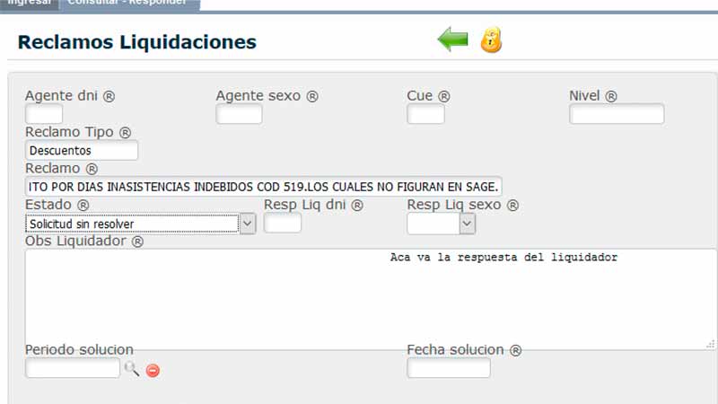 El mismo se encuentra disponible en la página del SAGE y con usuario y clave, cada docente puede entrar para completar en el formulario con el reclamo que desea efectuar y luego en el mismo espacio se le proporcionará la respuesta a lo requerido.