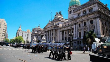 Hubo corridas y empujones en las filas de los manifestantes que lanzaron piedras por encima de las vallas que protegen al palacio legislativo y hacia donde se encontraba la Policía. Un extenso vallado, camionetas, carros hidrantes y más de 600 efectivos de la Gendarmería y la Policía Federal se encuentra resguardando el edificio sede del Poder Legislativo.
