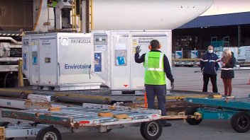 Según se informó oficialmente, un cargamento de 1.654.500 de dosis de AstraZeneca arribará hoy al aeropuerto de Ezeiza en el vuelo AC7251 de Air Canadá.