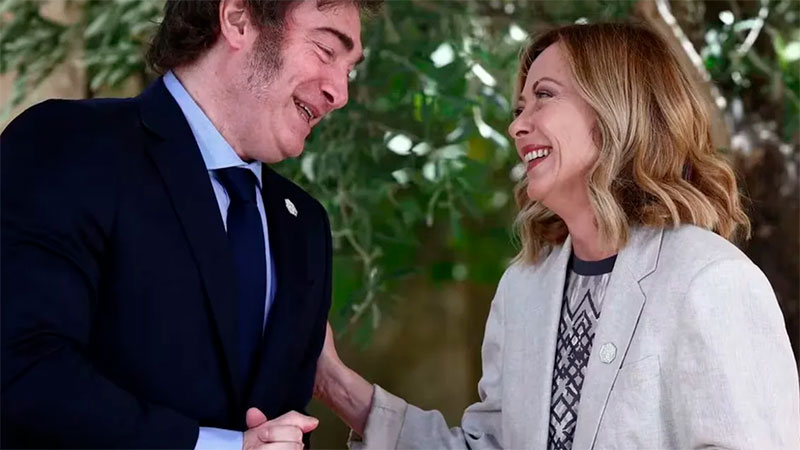 El presidente Javier Milei, quien está en la ciudad italiana de Bari en el marco de su visita a la cumbre de líderes del G7, que se realiza en un exclusivo Borgo Egnazia, en las afueras de la provincia de Brindisi tuvo un encuentro con la primera ministra italiana Giorgia Meloni, mientras que también cruzó un breve intercambio con el papa Francisco.