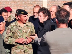 Milei estuvo en Bahía Blanca y supervisó el armado de un puente militar