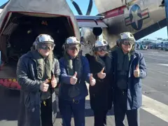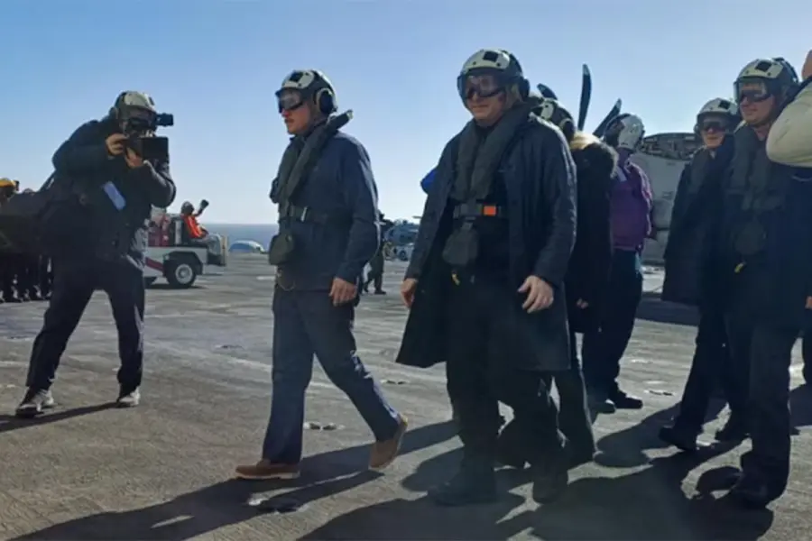 El mandatario partió cerca de las 10 de la mañana desde Aeroparque y fue trasladado a bordo de un avión Grumman C-2 Greyhound, utilizado para operar desde y hacia la cubierta del buque. Se prevé que aterrice directamente en el portaaviones, uno de los más grandes de la flota nuclear estadounidense.