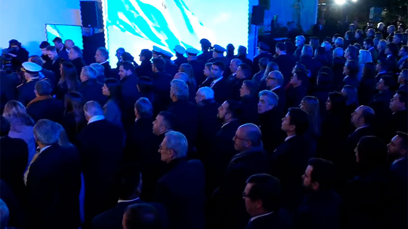 A las 23.20 comenzaron a llegar los gobernadores, ministros del Gabinete, invitados especiales y los ex presidentes Mauricio Macri y Adolfo Rodríguez Saá. Con todos los convocados presentes, arribó el presidente Javier Milei, con la banda y el bastón, y acompañado de su hermana Karina Milei.