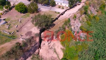 </b>Personal actuante de Defensa Civil de Diamante reportó que "a las 12.30 horas hubo una caída de aproximadamente 3 metros cuadrados frente al portón de herrería y se escucharon vibraciones. Y a las 12.40 hora se desplomaron 15 metros lineales aproximadamente por el ancho de la calle, respecto al 0 de la calle tiene un desnivel de dos metros. Además desde ese lugar se pueden observar grietas de aproximadamente 20 metros de profundidad en la cual se escuchan ruidos y vibraciones".
