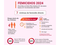 Según datos del Registro Nacional de Femicidios de la Justicia Argentina, en lo que va de 2024 se registraron 247 víctimas letales de violencia de género en todo el país, y 7 en la provincia de Entre Ríos.