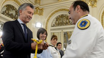 El Jefe de Estado compartió la ceremonia, realizada en el Salón Blanco, con la ministro de Seguridad, Patricia Bullrich.