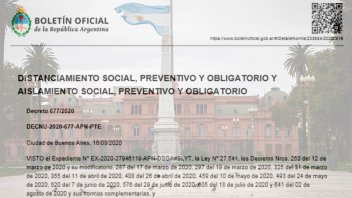 El texto prolonga el esquema diferenciado de la cuarentena por coronavirus en el país, con áreas bajo el régimen de distanciamiento social, preventivo y obligatorio (DISPO) y otras bajo el aislamiento social, preventivo y obligatorio (ASPO), más estricto.