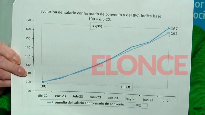 “Este año, en virtud del incremento del costo de vida, las paritarias se homologaron por períodos más breves, por tres meses; razón por la cual, hay una negociación casi permanente, continuada”, recalcó la ministra de Trabajo de Nación. Y agregó: “Estas negociaciones paritarias permitieron que, en promedio, los convenios acompañaran el proceso inflacionario; inclusive, en junio y julio donde el índice de costo de vida se redujo, lograran una mejora de tipo real”.