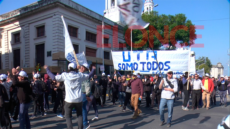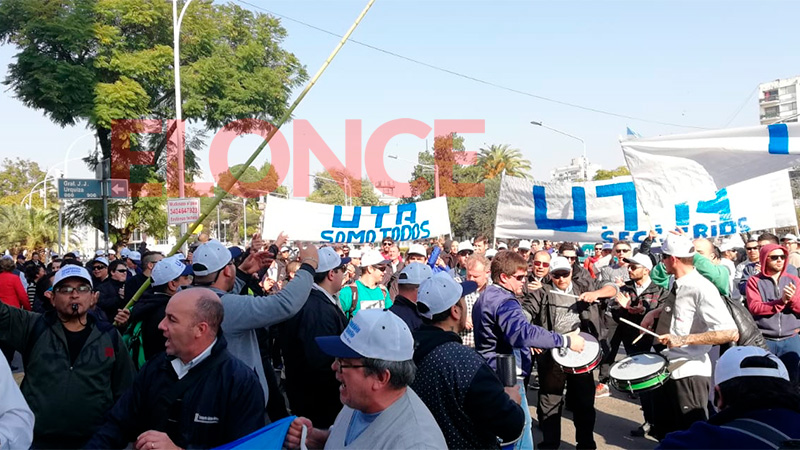 Los choferes concentraron frente a la sede de UTA, en calle Irigoyen, desde donde marcharon, en primer término, hacia la Municipalidad de Paraná y luego, a Casa de Gobierno.