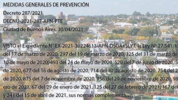 <b>Las nuevas medidas están detalladas en el decreto 287/2021</b> publicado hoy en el Boletín Oficial, con la firma del Presidente; el jefe de Gabinete, Santiago Cafiero y la totalidad de los ministros del Gabinete nacional.