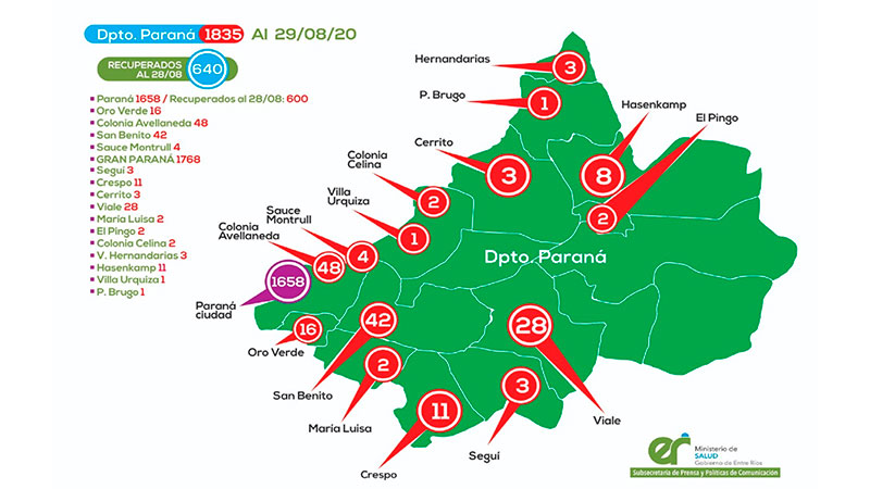 También hizo saber que desde el Ministerio de Salud se siguen desarrollando acciones de vigilancia epidemiológica y asistenciales. No obstante, <b>las ciudades de Paraná y Gualeguaychú con transmisión comunitaria sostenida enfrentan una situación de riesgo sanitario.