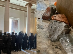 Relató que “manifestantes, agrupaciones gremiales y organizaciones sociales que estaban apostadas en la puerta principal, empezaron a empujar con fuerza la puerta: lograron romperla y así arrojar distintos elementos. El poco personal policial que estaba adentro del edificio pudo contener el ingreso de manifestantes. La gente empezó a destrozar la puerta”.